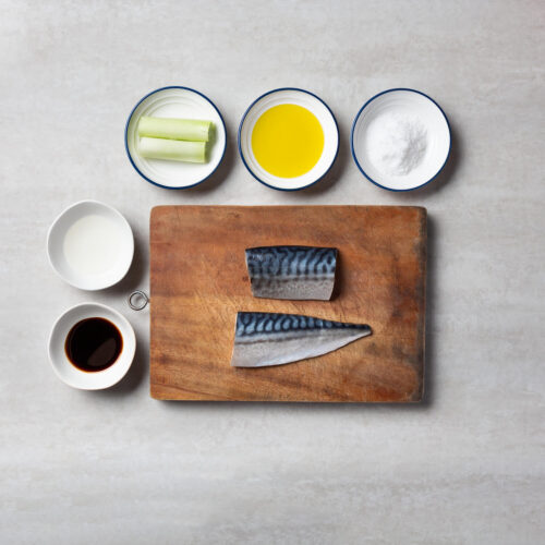 Thấm rượu gạo vào 2 miếng phi lê để loại bỏ mùi tanh của cá saba. Để rượu thấm vào cá trong 5 phút.