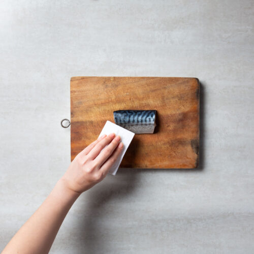 Thấm khô cá với giấy ăn để loại bỏ độ ẩm trên bề mặt cá.